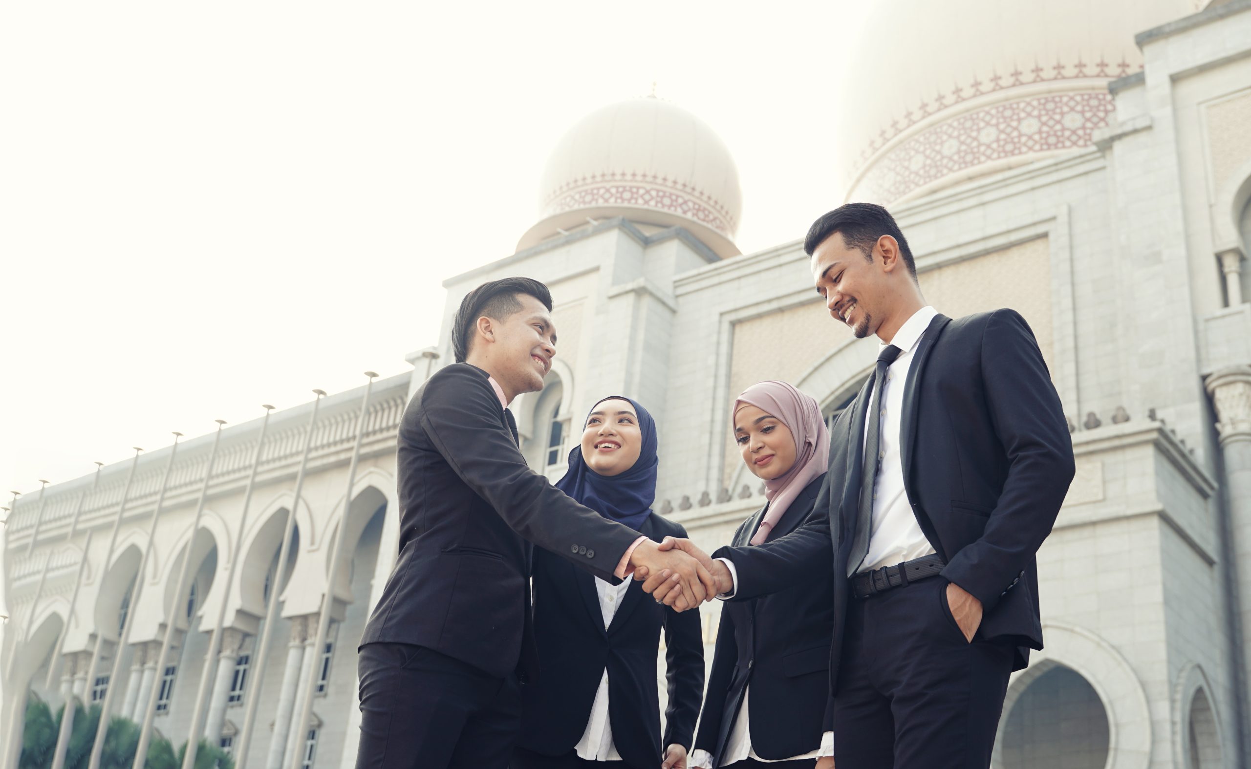 Muslim,Asian,Business,People,Shaking,Hands,With,New,Partner,,Business